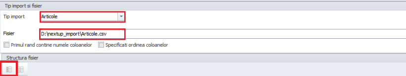 Pentru ca toate datele din tabel sa se importe corect este obligatoriu sa bifati campurile pe care le doriti importate ca Activ in NextUp-Ciel.