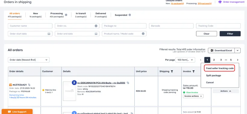 Din momentul conectarii Oblio cu contul Trendyol, comenzile vor fi trimise catre Oblio si vor fi listate in Oblio > Rapoarte > Trendyol.