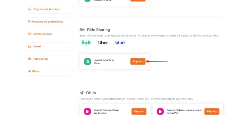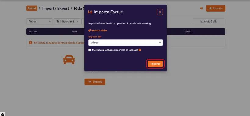 In pagina de import Ride Sharing, apasati pe butonul Importa: