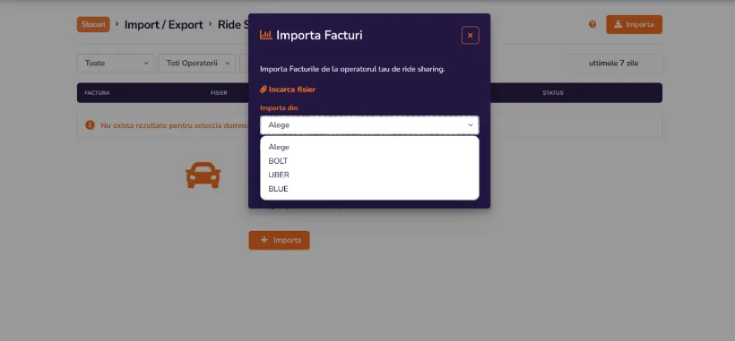Incarcati fisierul cu Facturile din Bolt/Uber/Blue: