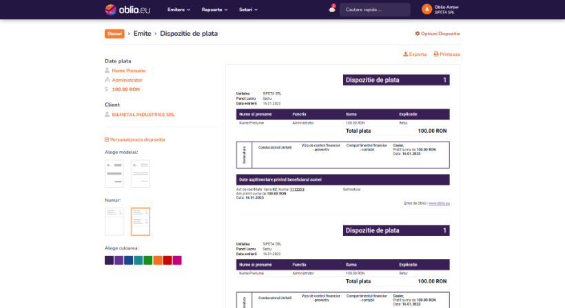 Daca apasati pe DA , urmeaza sa se emita Dispozitia de plata. Completati toate campurile si apasati pe butonul Returneaza banii.